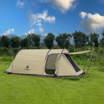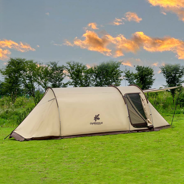 Spacious camping tent with separate bedroom and living area. Waterproof and wind-resistant, suitable for all seasons.