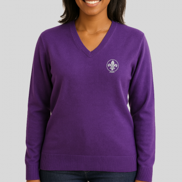 Navy blue or purple sweater with embroidered scout emblem on chest